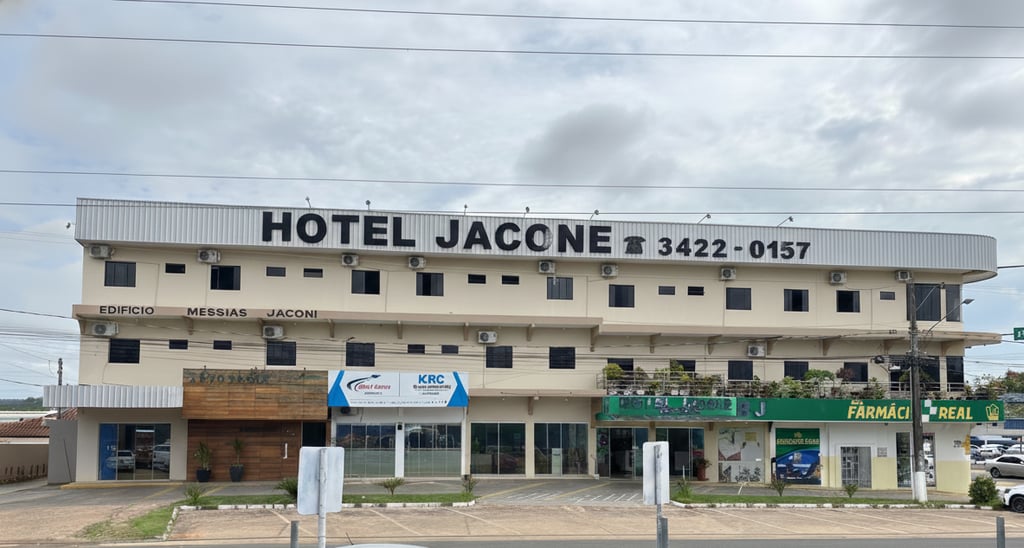 Imagens que mostram o conforto e a localização do Hotel Jacone